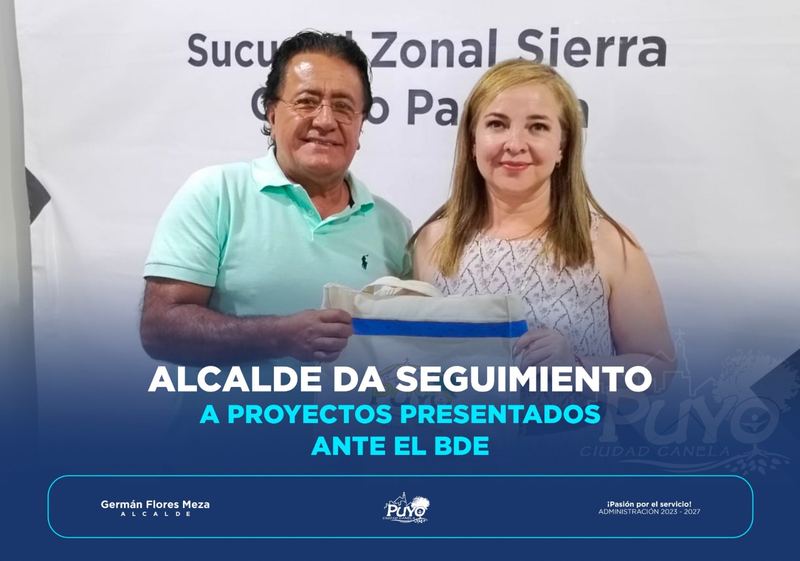 El alcalde Germán Flores Meza, se reunió con la gerente regional del Banco de Desarrollo Soraya Vásconez, con el propósito de dar el seguimiento necesario a los proyectos que ha presentado el Municipio de Pastaza ante la entidad para conseguir el financiamiento que permita impulsarlos en nuestro cantón.