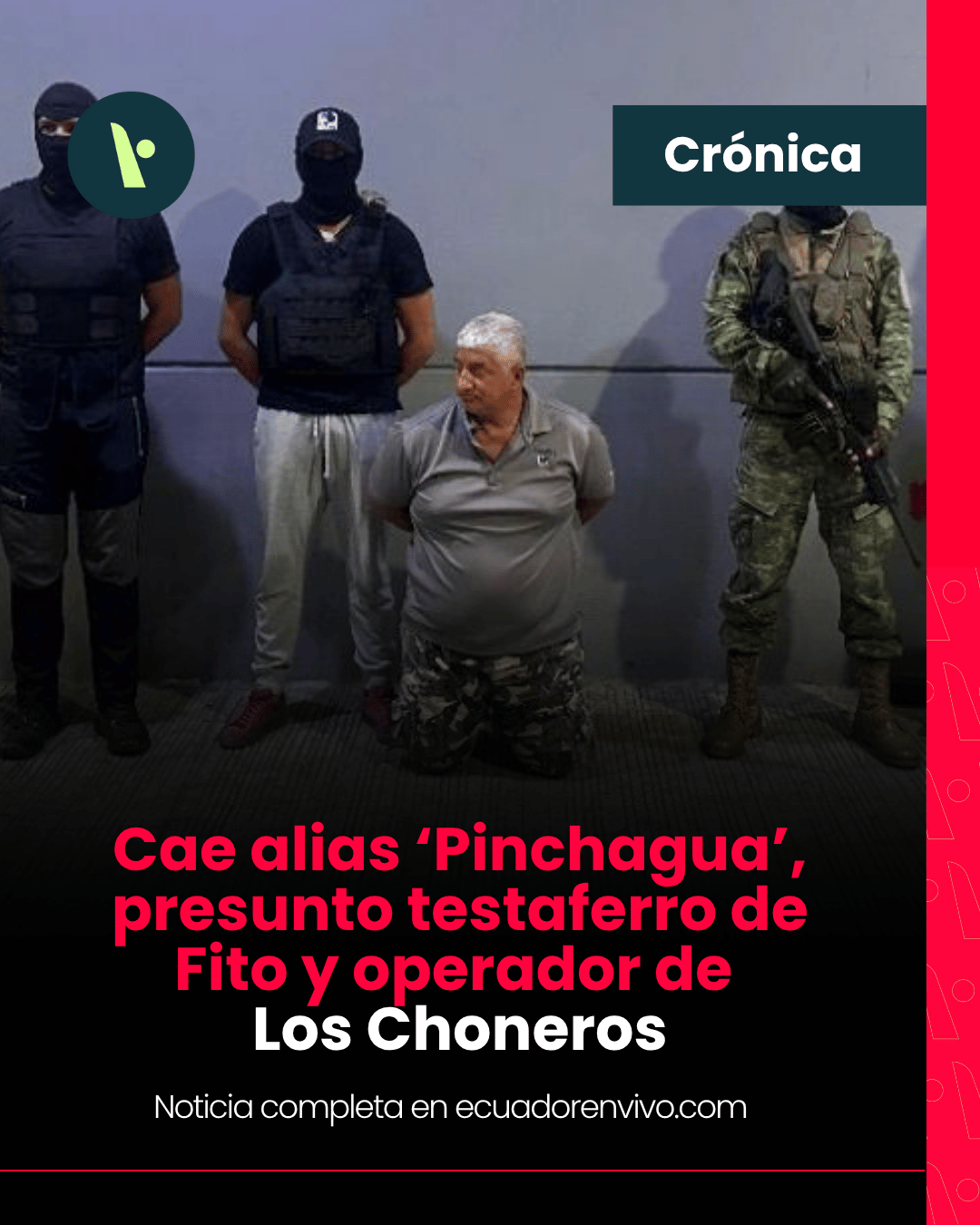 Alias Pinchagua, presunto testaferro de Los Choneros y vinculado a alias Fito (@FFAAECUADOR), fue capturado en Portoviejo tras la extradición del cabecilla a EE. UU. Se hallaron armas y municiones en su poder.