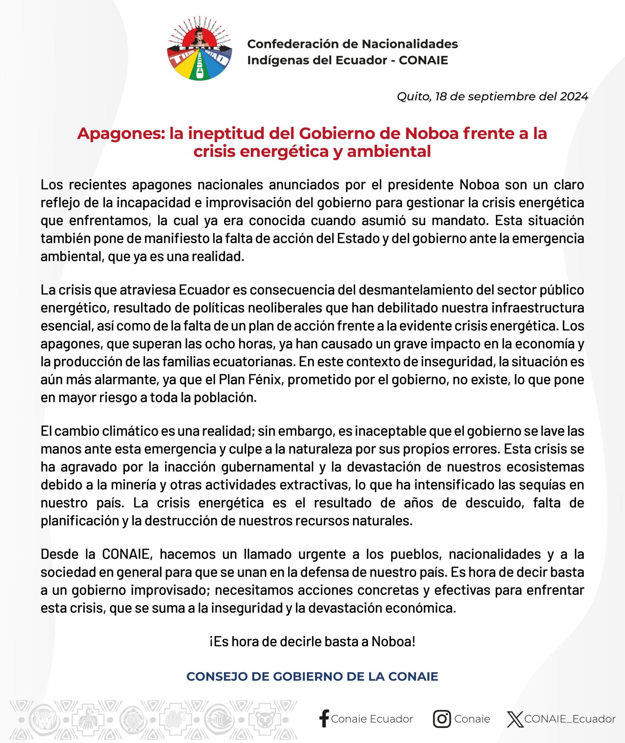 Apagones: la ineptitud del Gobierno de @DanielNoboaOk frente a la crisis energética y ambiental.