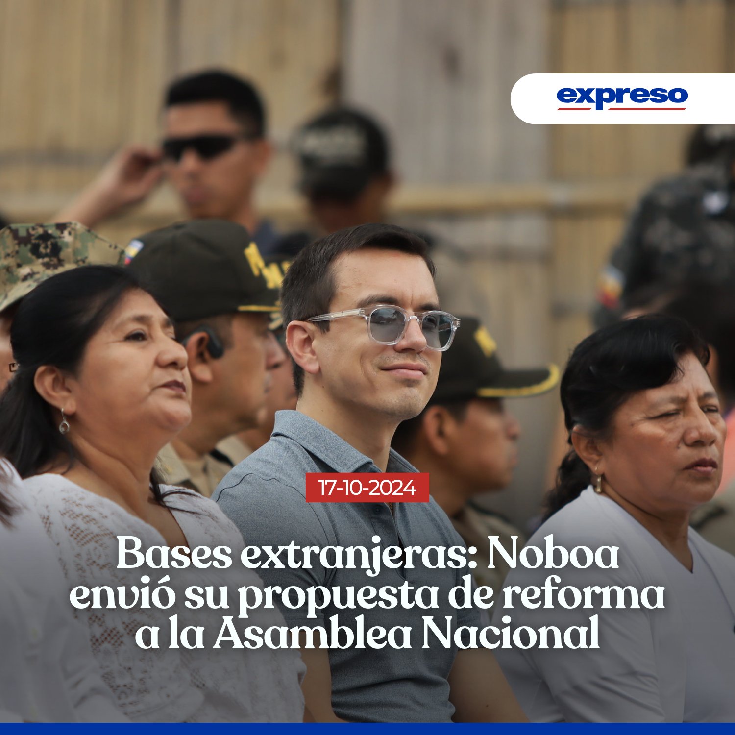 El presidente ecuatoriano Daniel Noboa envió este 17 de octubre de 2024 a la Asamblea Nacional su propuesta de reforma a la Constitución para permitir el regreso de bases militares extranjeras al país.