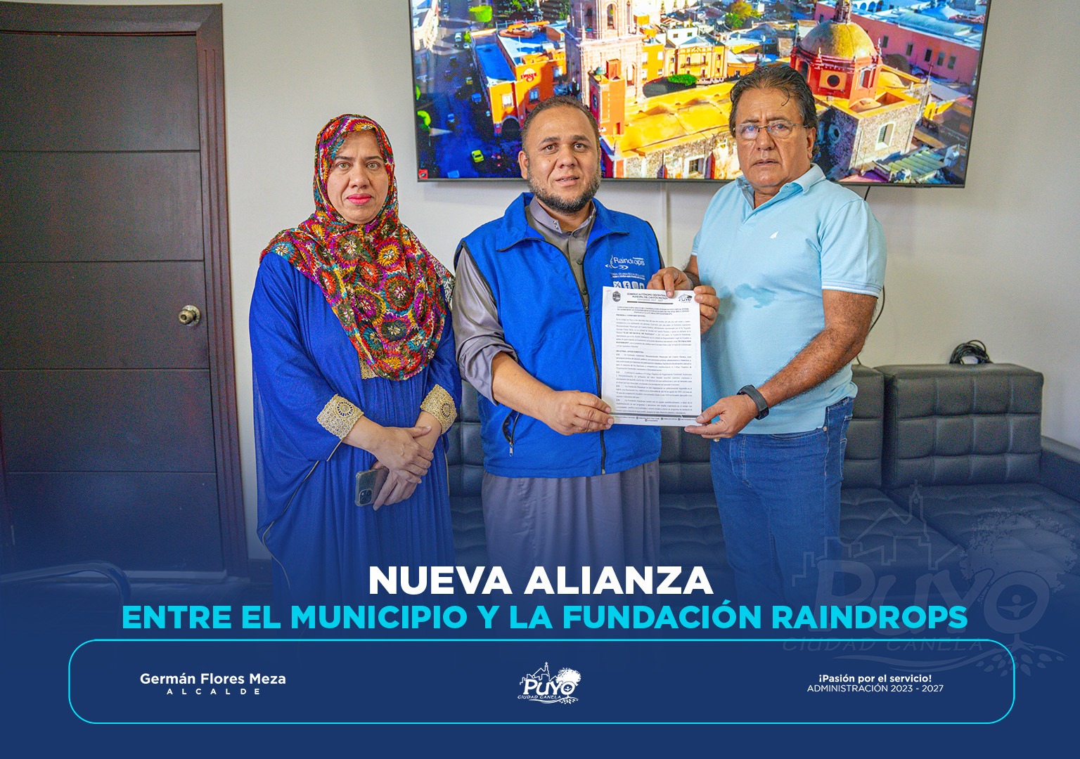 El Municipio de Pastaza y la Fundación Raindrops firmaron un nuevo convenio específico de cooperación Interinstitucional, con el fin de facilitar una oficina para que la Fundación Raindrops preste su labor social desde nuestra ciudad.