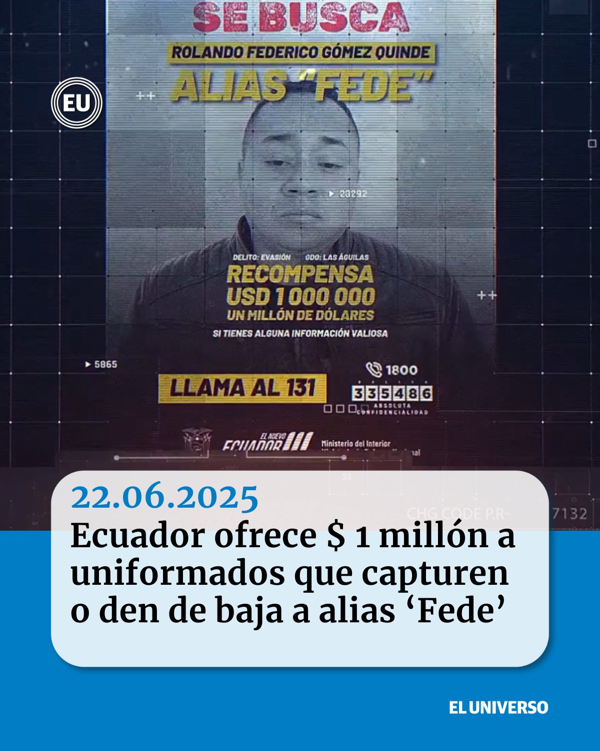 Recompensa | Gobierno de Ecuador ofrece $ 1 millón a policías o militares que capturen o den de baja a alias ‘Fede